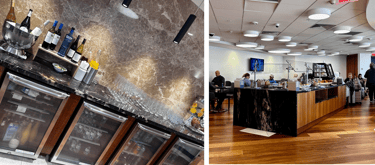 This lounge was nice but mostly for getting some food and leaving as the chairs were not that comfortable and more just tables and chairs. They had beer, champagne, wine, a bottle of vodka, and nonalcoholic beverages (sodas, water, coffee, tea) but I didn't see a full bar. The buffet was pretty big with quite a few choices but nothing that substantial. Secret tip, you can order off the menu by scanning the QR code at your table, which had just a couple of items (for breakfast- waffles, eggs and home fries). All included with your pass membership.