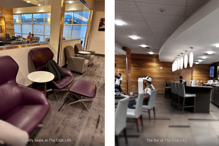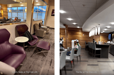 The Club LAS is located in Terminal 1 of the Las Vegas Harry Reid International Airport. Hours are 5:00am-23:30 daily. Amenities include air conditioning, alcoholic and nonalcoholic drinks, disabled access, flight information, showers, bathrooms, tvs and wifi. This was the first lounge I went to so I had no expectations or comparisons. In retrospect, what I liked most was the comfy seats with footrest. I didn’t find these anywhere else. I was able to get some journaling and reviews done while waiting for my plane.