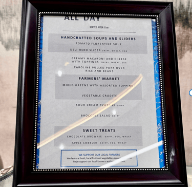 The served food in particular was very good and we made great use out of our long layover by trying everything (OK...Maybe we tried some things twice just to make sure we liked it! lol). I am also posting a picture of the menu from the day I was there (I'm guessing it changes daily). The macaroni and cheese, pulled pork over rice and beans and hero sliders were all pretty good.