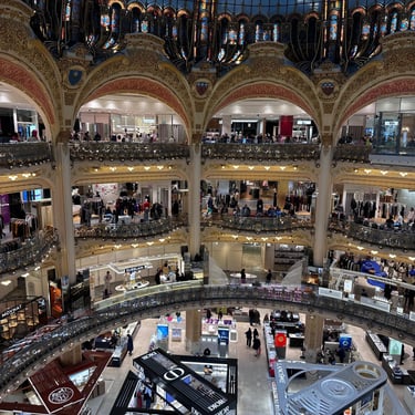 Afterward, we headed to Galeries Lafayette Haussmann, an iconic Parisian department store that is unlike anything you’ll find in the U.S. They have a lot of high-end designer brands, restaurants, and they even had a resale area. Amazing & dangerous! The building’s stunning architecture, with its dome and gold archways, is worth a visit in itself. There was a glass bridge that jutted out suspended in the air where you could walk out onto. It’s free but you need reservations. It can be booked online for free https://haussmann.galerieslafayette.com/en/events/glasswalk/